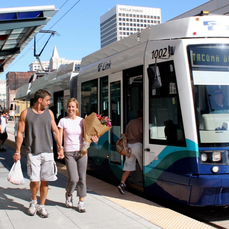 Just hop aboard this light rail car and travel the length of the Tacoma downtown.